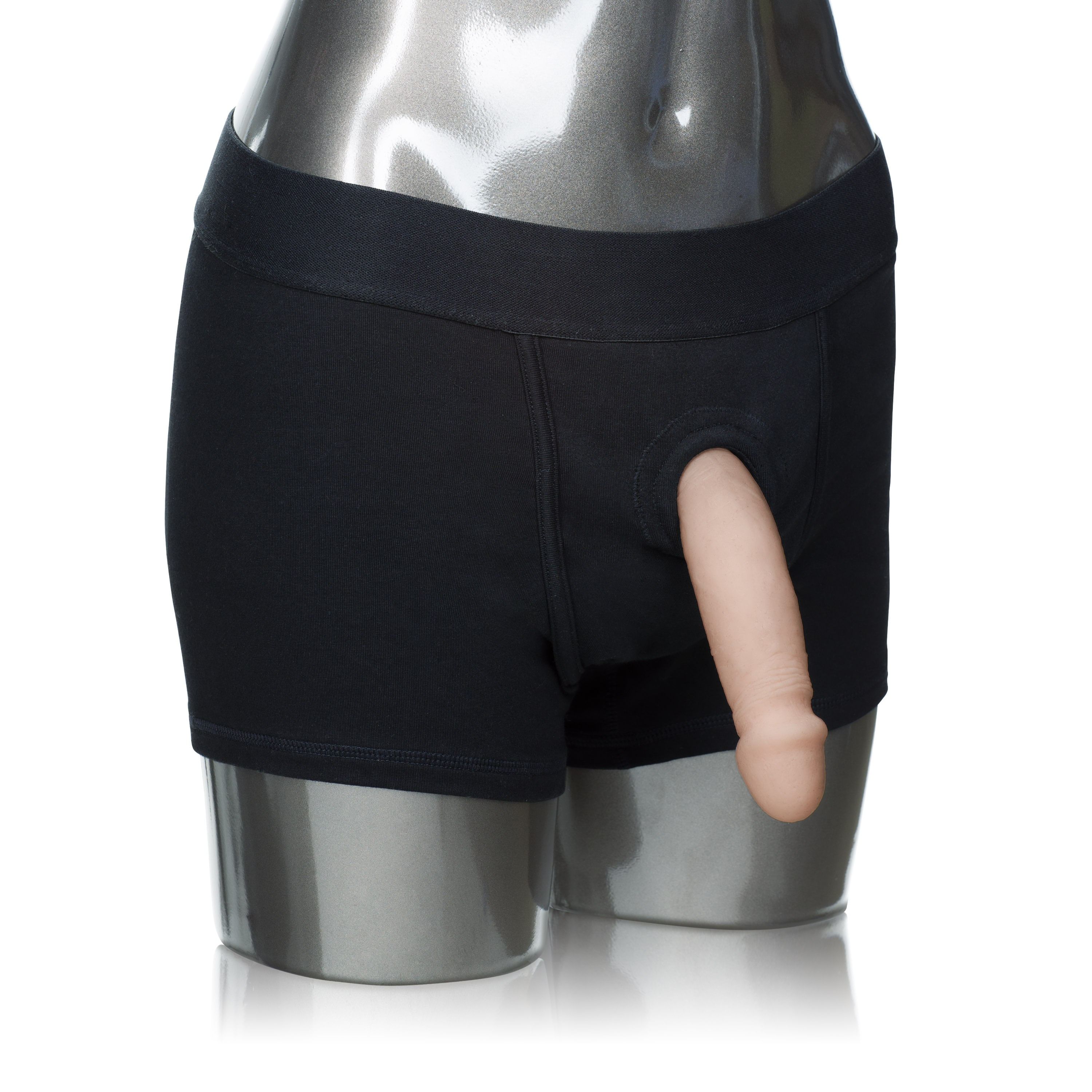 Discreet 2-panel design to accommodate dual penetration. or probes. Soft stretchy and comfortable. Comfortable soft lining. Internal strap to secure your packer in place. Internal pockets to add a favorite stimulator.