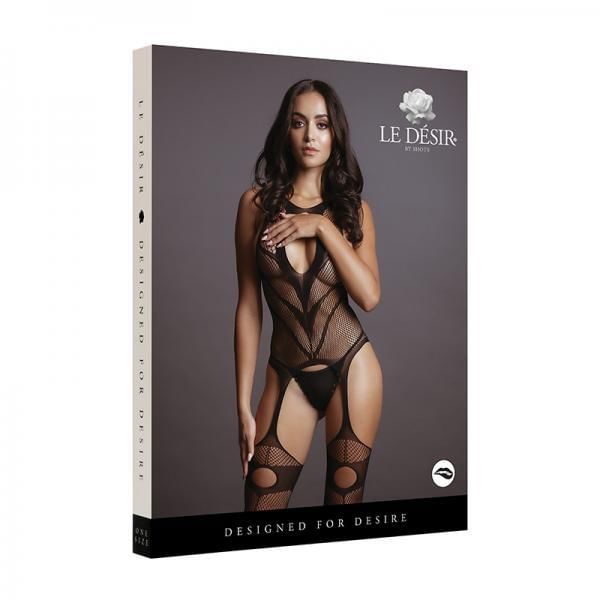 High neck suspender bodystocking with sexy keyhole. This bodystocking has a contract opaque pattern onto the fishnet. Attached stockings with sexy keyhole opening on the legs and backseam. This bodystocking has a lot of stretch and can be worn from size S to XL. * Fabric stretches four ways and forms on your body. * Easy-fit * Lots of stretch * Affordable * Edgy style * Suspender style