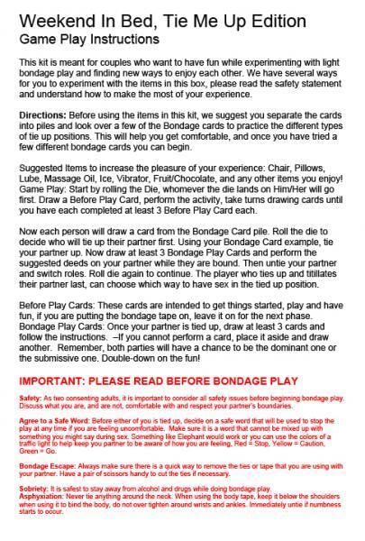 Weekend In Bed All Tied Up Game Kit